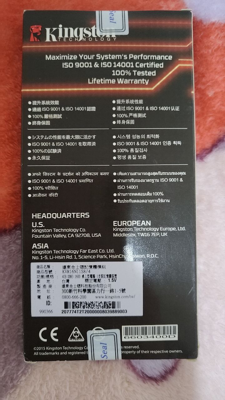 DDR3 金士頓 4G 桌電用記憶體