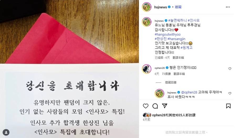 韓尚進上傳了自己收到的邀請函,承認自己的代表作是<藉口GO>XDDDD
