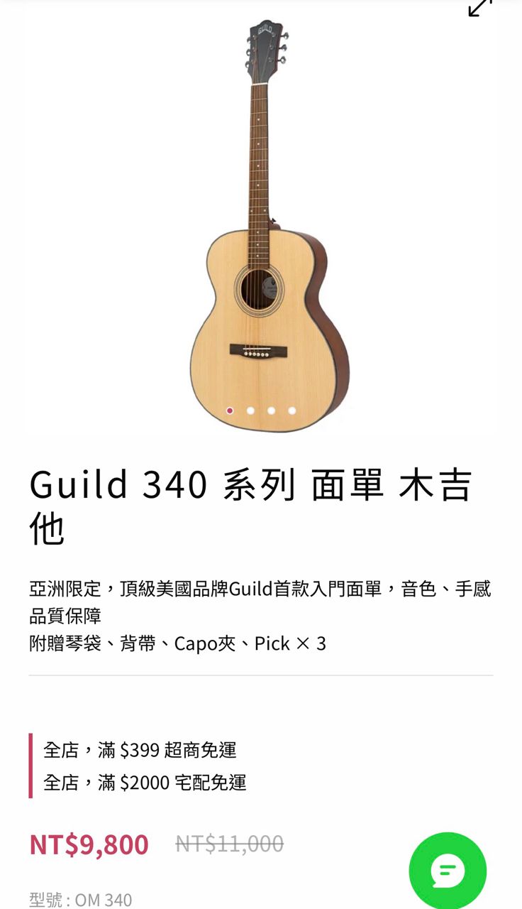 1. 超新Guild 面單吉他(五月天愛用牌子)