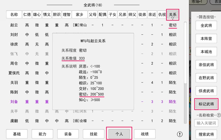 ● C:點擊「標記」可將武將加入最愛清單,這是很棒的設計,將來可縮短很多操作時間