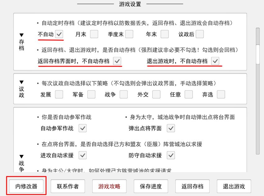 所以如果覺得遊戲初期做政務、累積功績名望很累,可以研究一下所有的設定配置,找出
