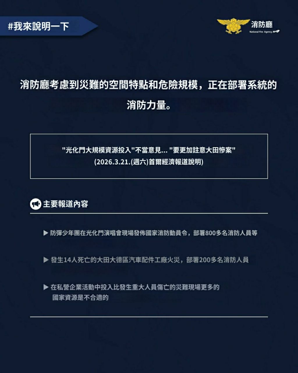 入的消防警力竟然比BTS的回歸活動要少,引發民眾批評聲浪不斷,質疑政府資源調度失