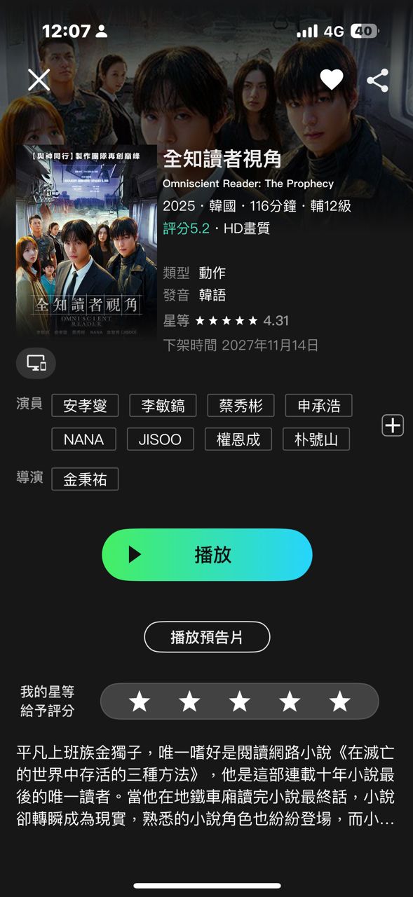 284F:推 wnko: 11/14起電影《全知讀者視角》在中華電信MOD獨家上架3個月 10/27 22:33