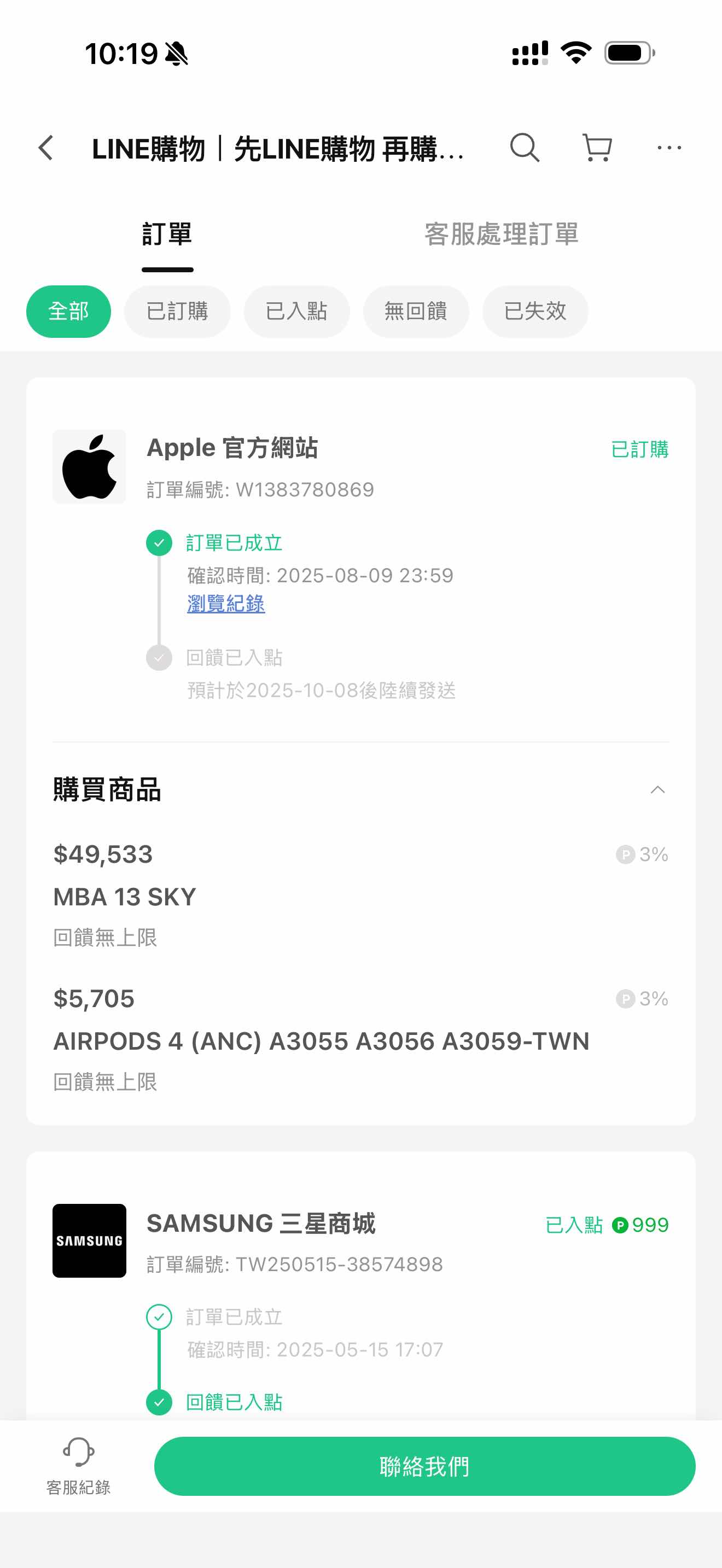 2025/8/11 5:01 收到LINE&LINE購物通知「訂單確認」 3% 回饋導購