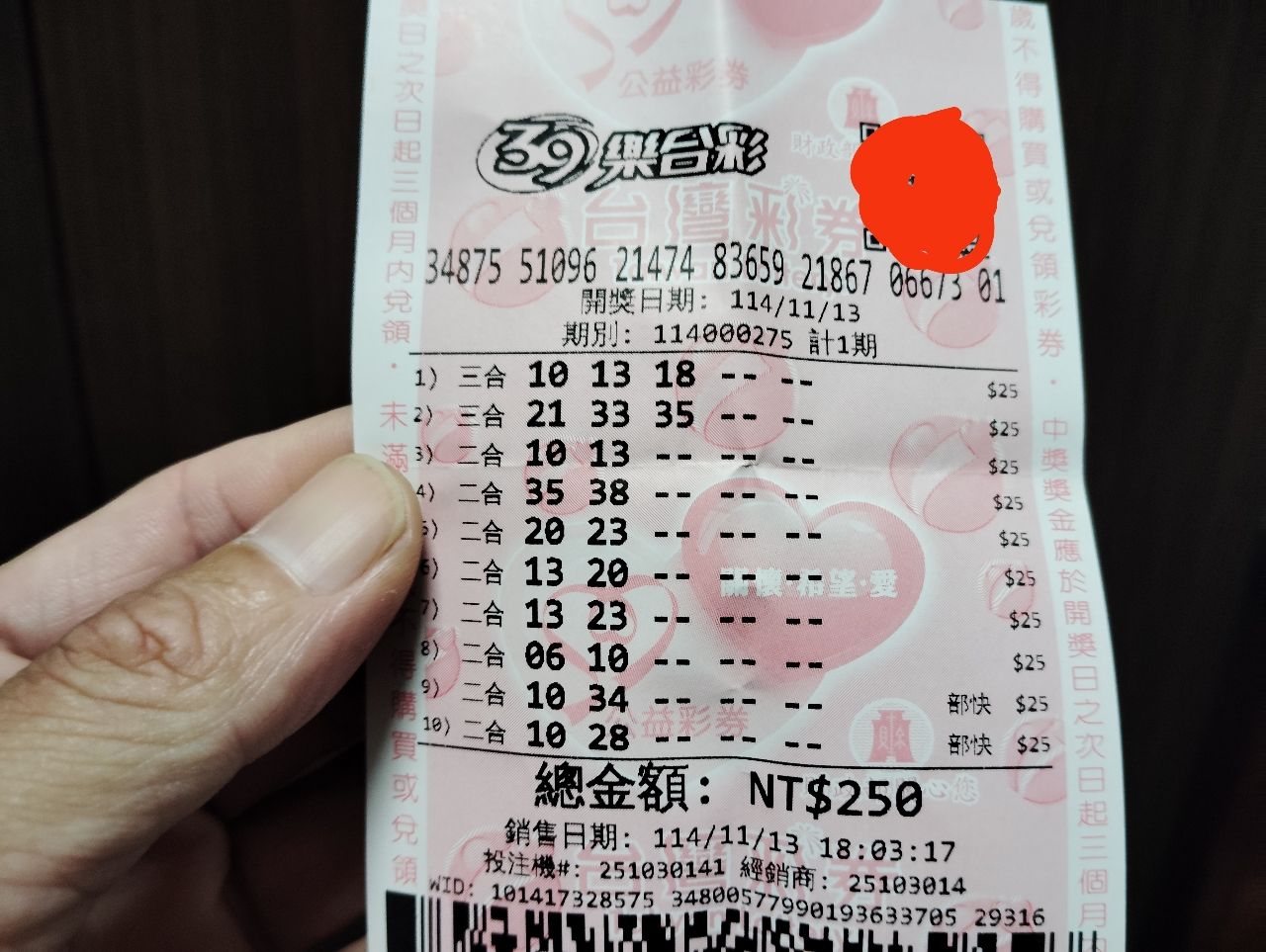 ※ 文章網址: https://webptt.com/m.aspx?n=bbs/Lottery/M.1763024685.A.892.html