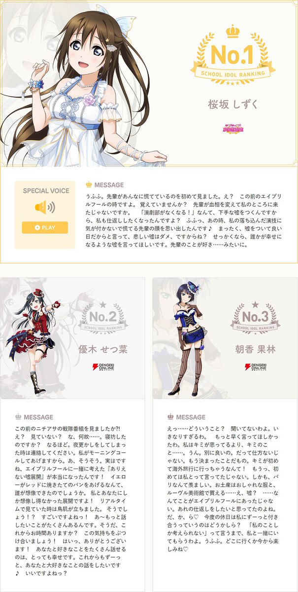 標題[情報] 虹ヶ咲学園學園偶像同好會 3月投票結果