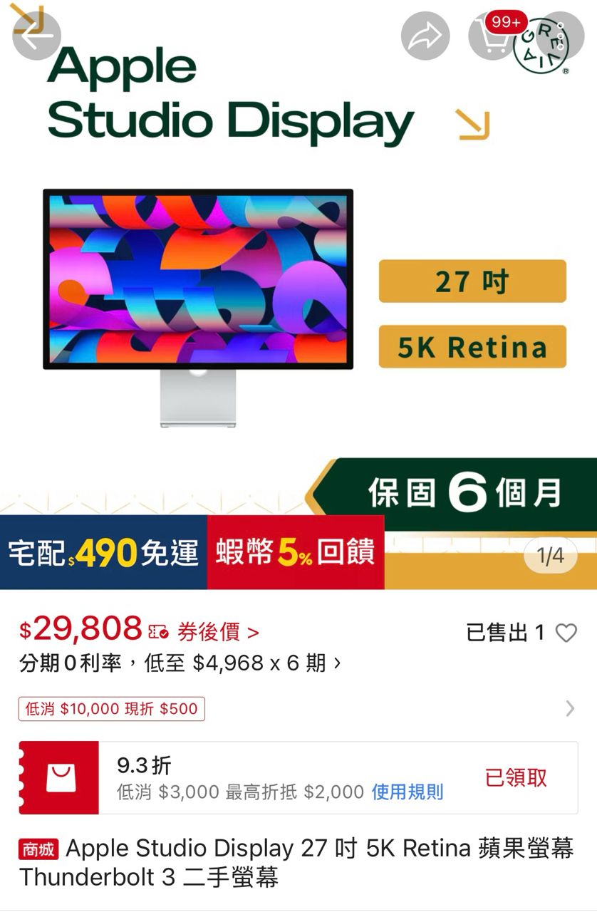 接著又找到二手的Studio display