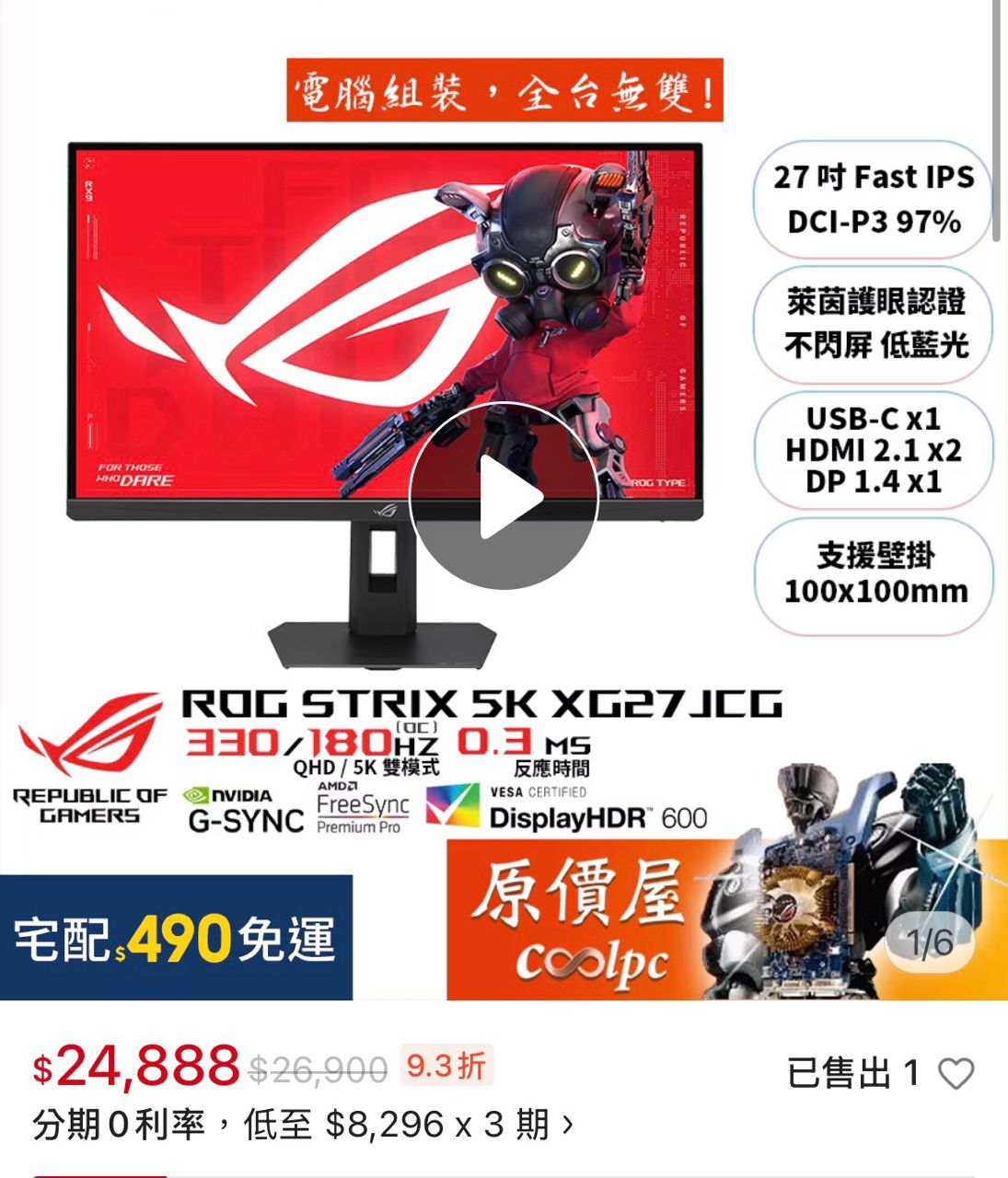 華碩那台太醜pass,不過有另一台rog xg27jcg