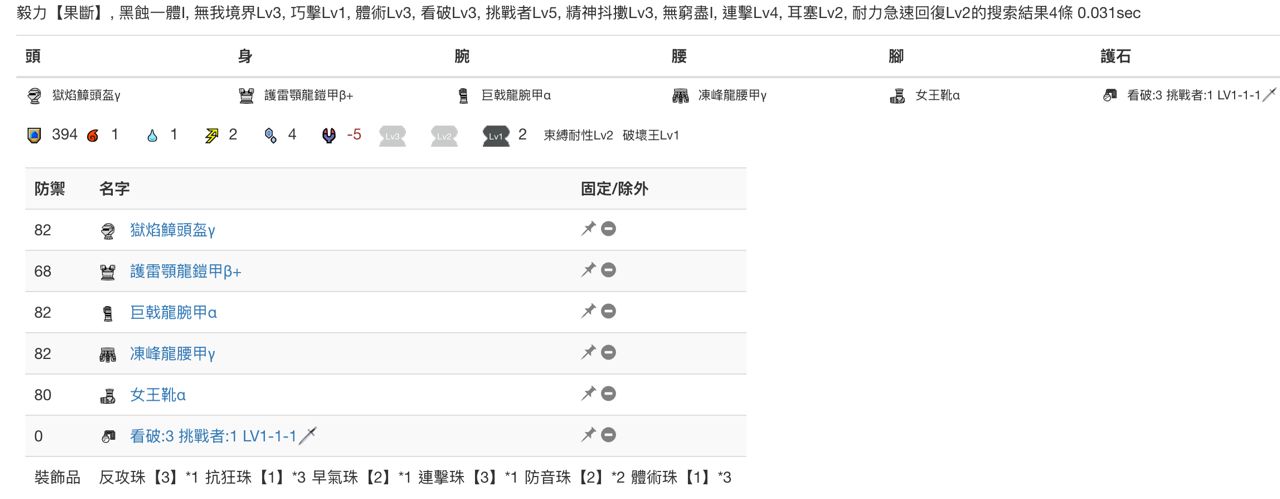 兇爪雷顎)每件裝給的點數上限就會稍微低一些,所以在該有的技能配一配的情況下強度