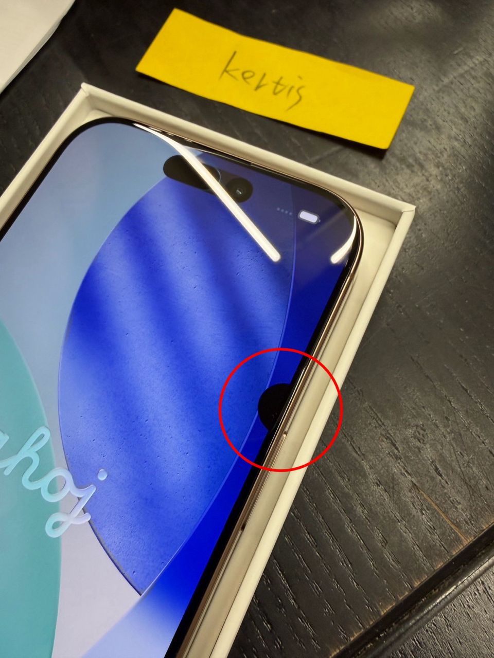 螢幕的右側上方有一個液化黑點(如紅圈處)
