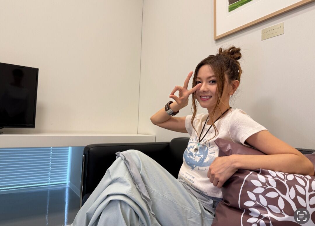 写真は、緊張から解き放れたテレビ出演後のRelaxした倉木..
