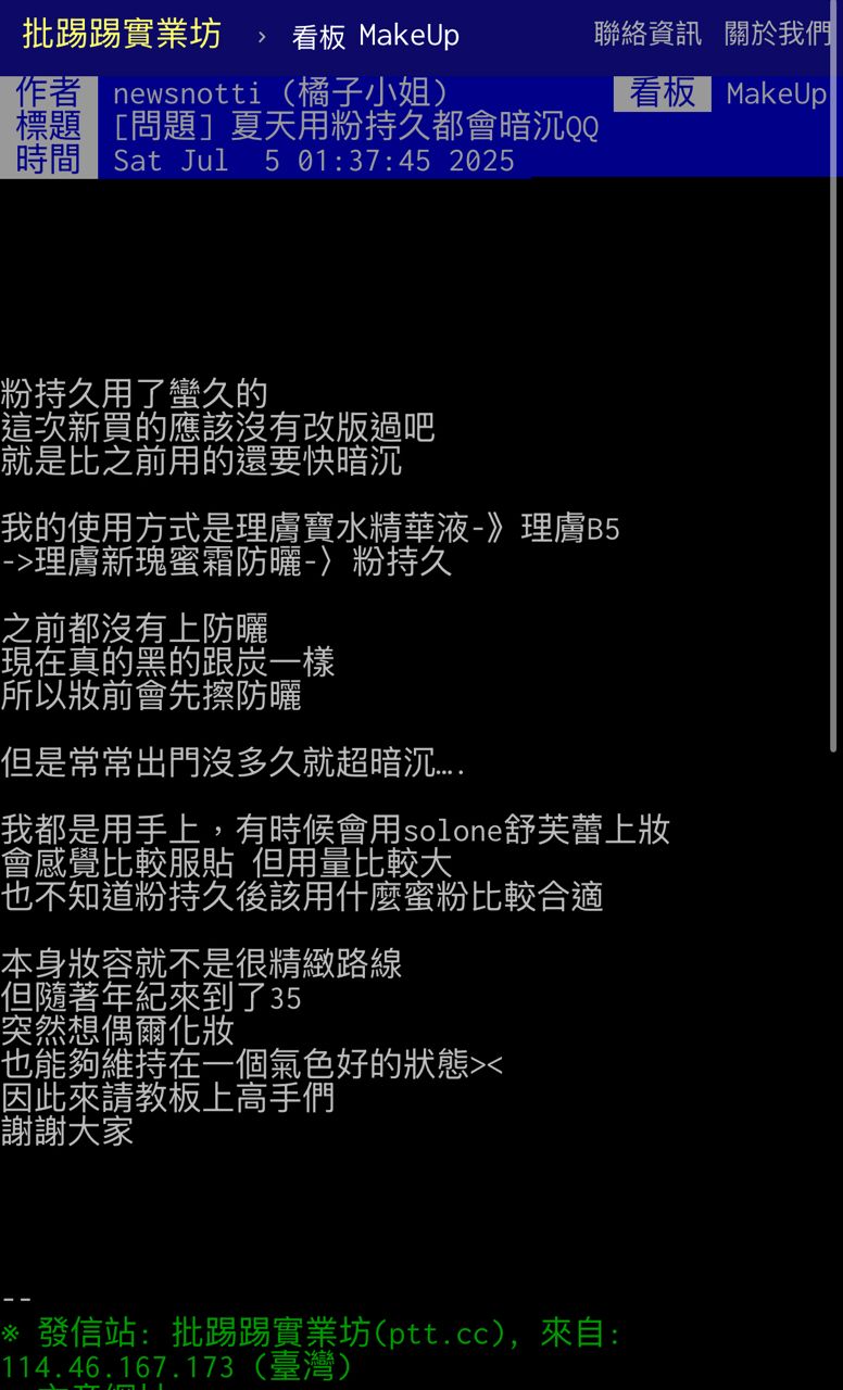 ※ 文章網址: https://webptt.com/m.aspx?n=bbs/MakeUp/M.1763781792.A.B87.html