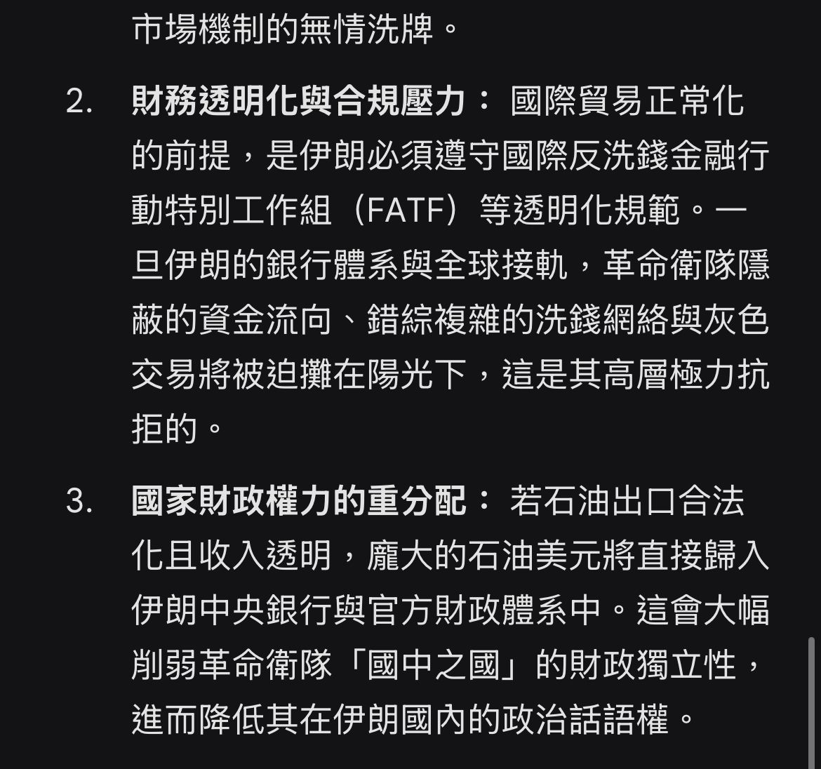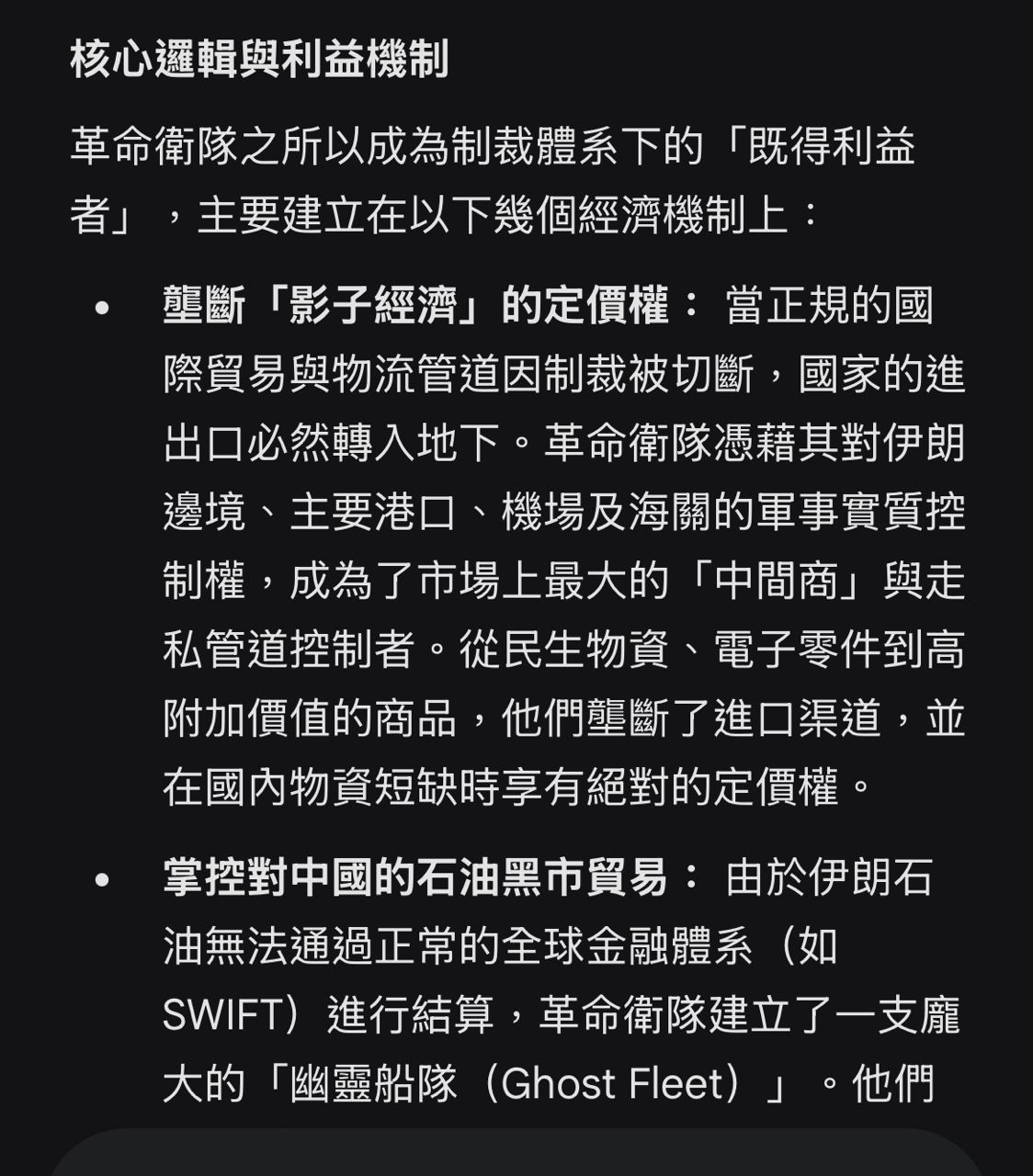 * 內容: 深度分析文章《伊朗的菁英衛隊如何從國家石油工業中兌現》。文中指出,