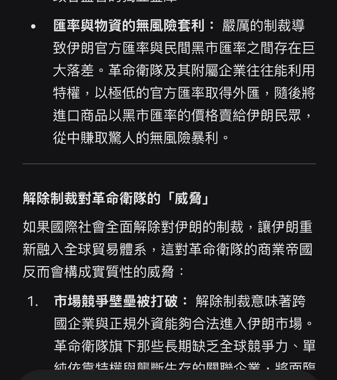 只有針對革命衛隊是否希望制裁部分ai整理