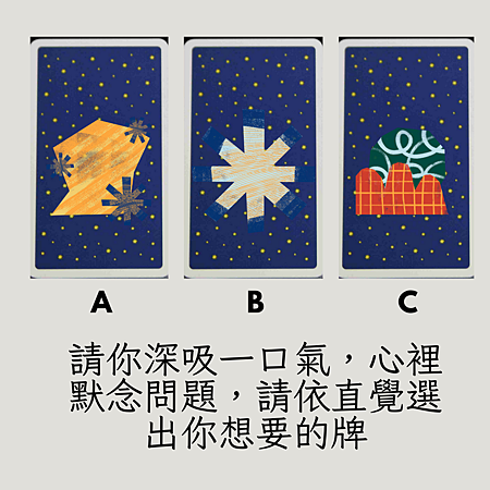 請你深吸一口氣,心裡默念問題,請依直覺選出你想要的牌。
