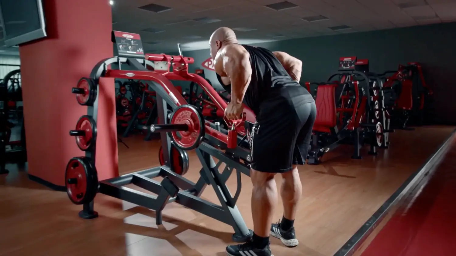 如圖所示,Phil Heath是腹部靠在靠墊的位置: