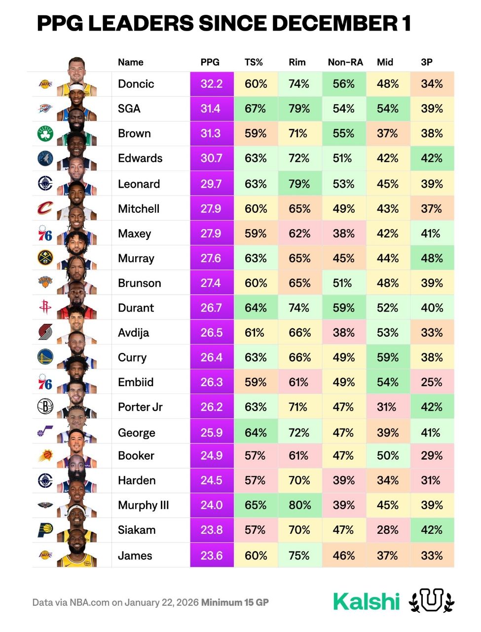 ts of talk about his midrange, but since December 1 he’s shooting ~12% higher