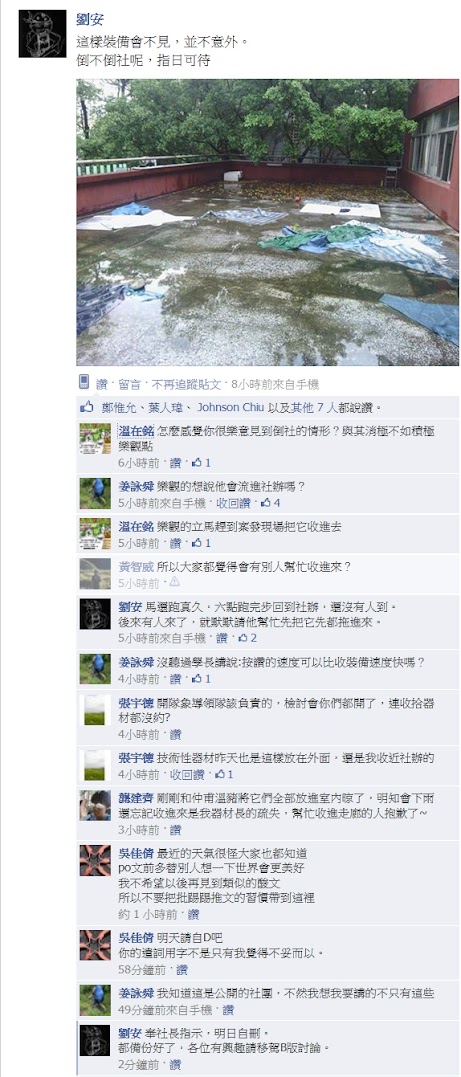 仲甫:劉安 裝備是我叫大家昨天下雨時不要收的