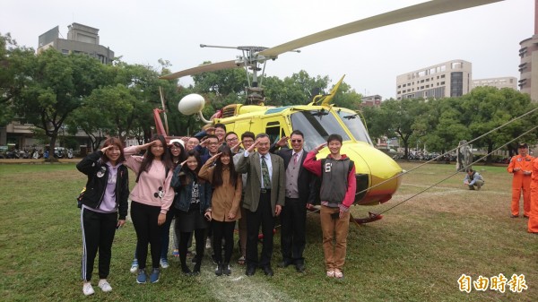 一架內政部空中勤務總隊的救難直升機最近除役,今天上午降落國立成功大學,將提供教