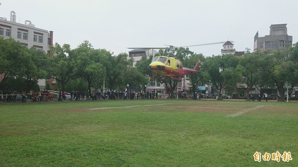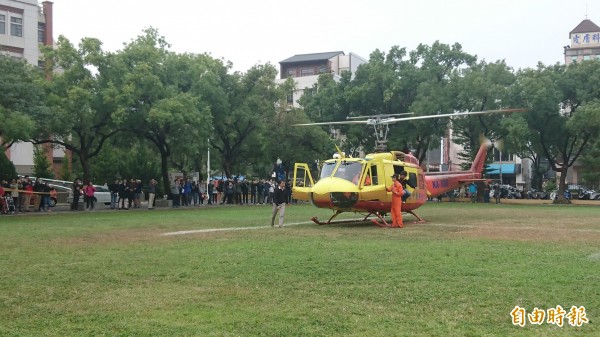 [記者劉婉君/台南報導]一架內政部空中勤務總隊的救難直升機今天上午降落國立成功