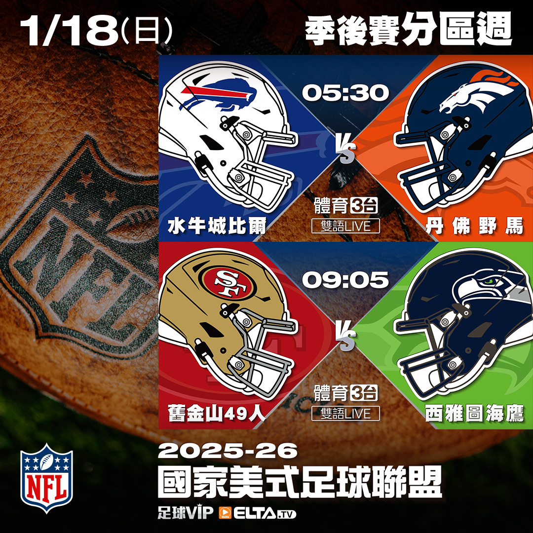 標題[NFL!] 2025-26 季後賽分區賽 愛爾達轉播預告