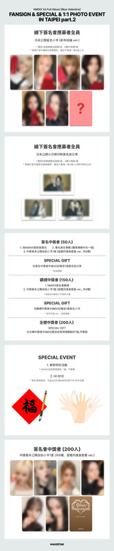 - 將於合照會中獎者中抽出12位中獎者,可於拍攝後與應募成員面對面聊天並在拍立得簽