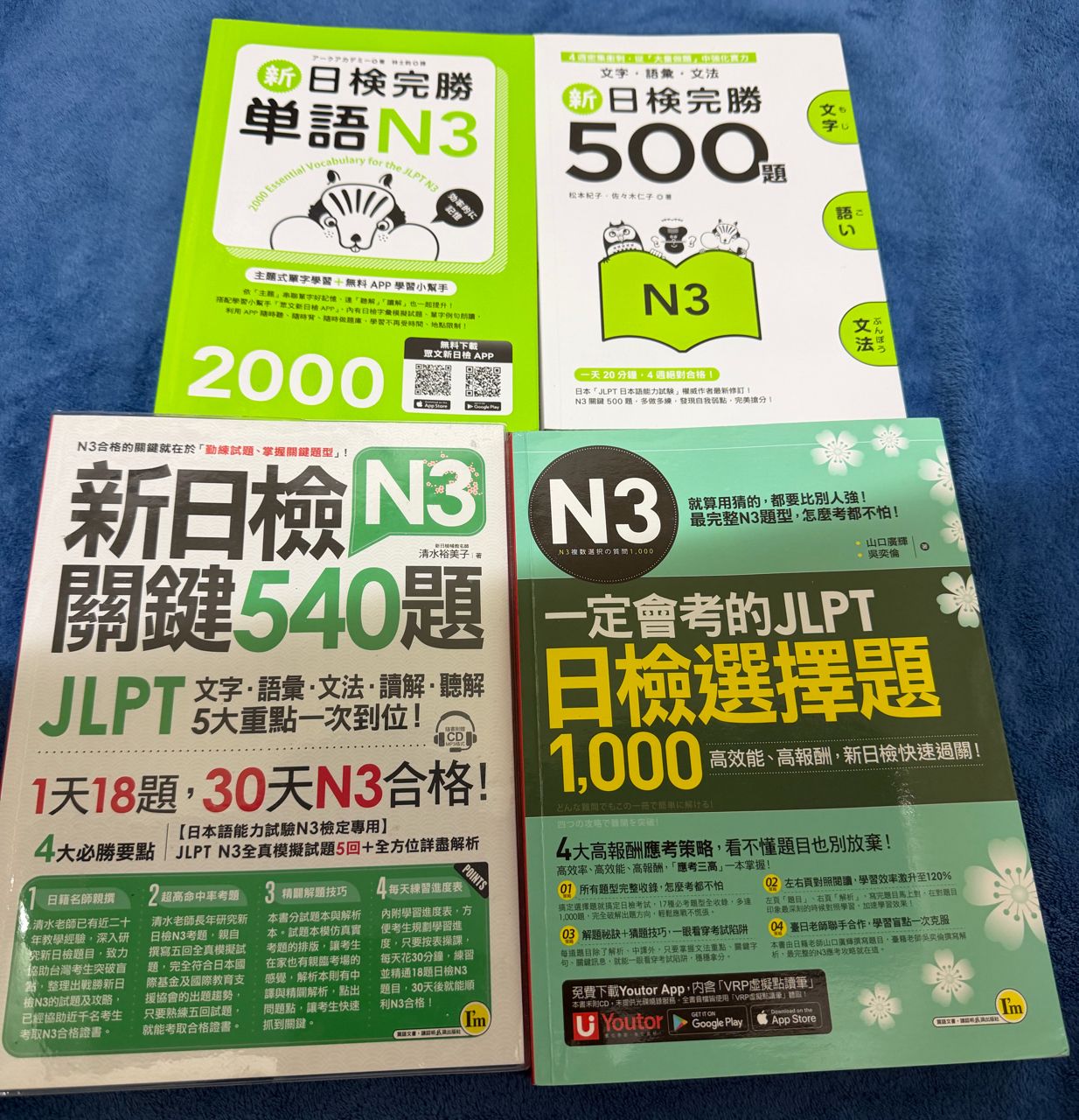 去年看了PTT 網友用心分享使用心得後,購入這4本一次通過日檢N3,因為要搬家想出售