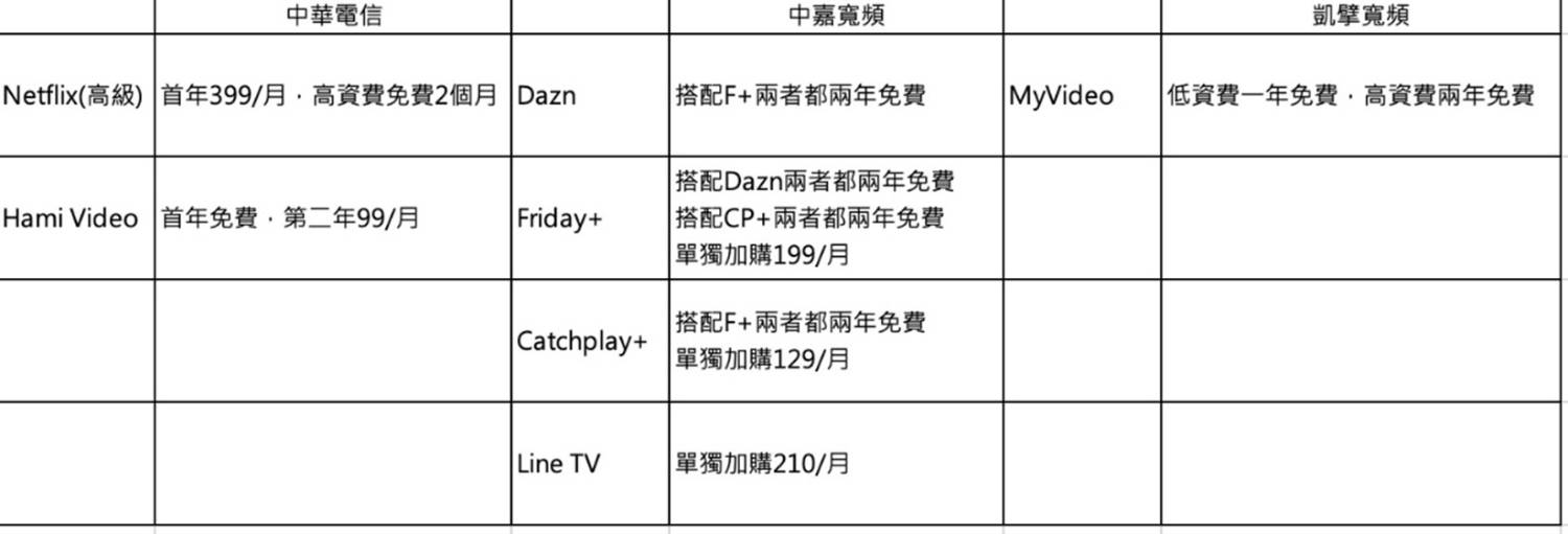 標題[情報] 三大家用寬頻新辦/續約搭配串流優惠整理