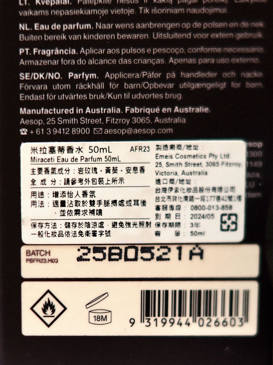 1.出售香水名稱:Aesop 米拉塞蒂