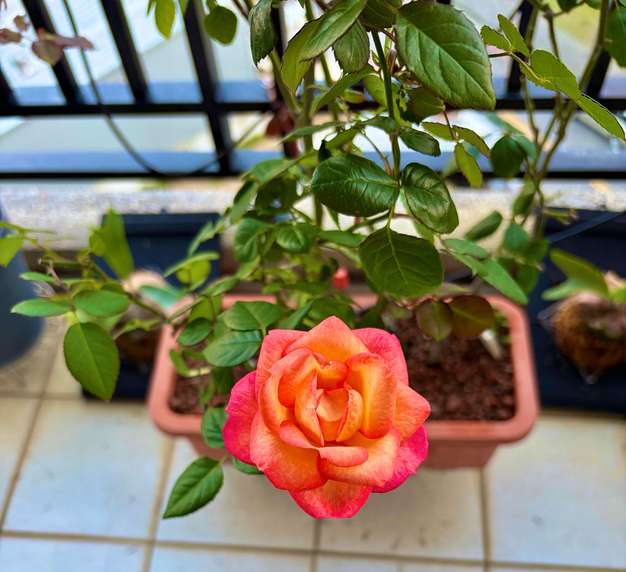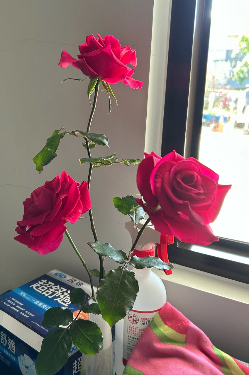 目前玫瑰總共有4盆,都是不同花色(鮮紅、桃紅、白、橘紅),這四盆養了也