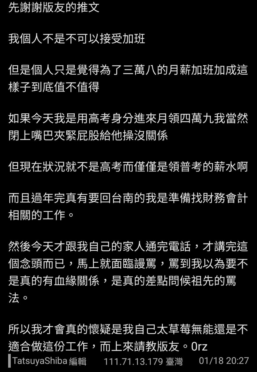 禮拜天都得加半天的班趕業務跟公文),不知道是只有我待的這個單位職缺會這樣子?還