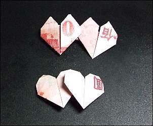 紙鈔雙愛心:老孫拿了百鈔折成的雙愛心給女主