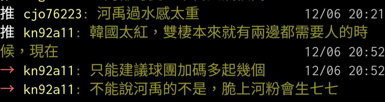 1F:→ kn92a11: 不能說河禹的不是,脆上河粉會生七七12/06 20:53