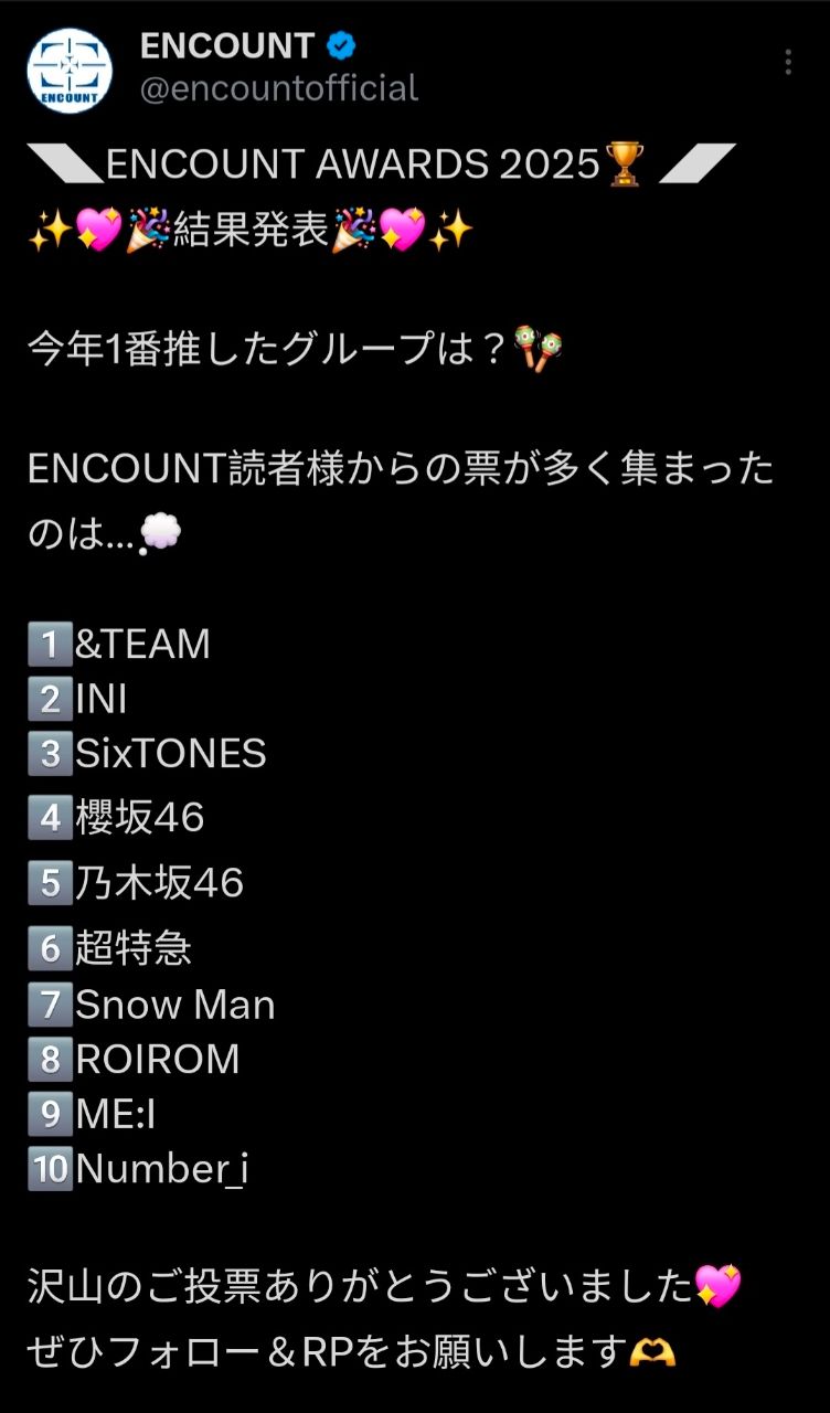 標題[坂道] ENCOUNT今年的臉票選/最推團體票選