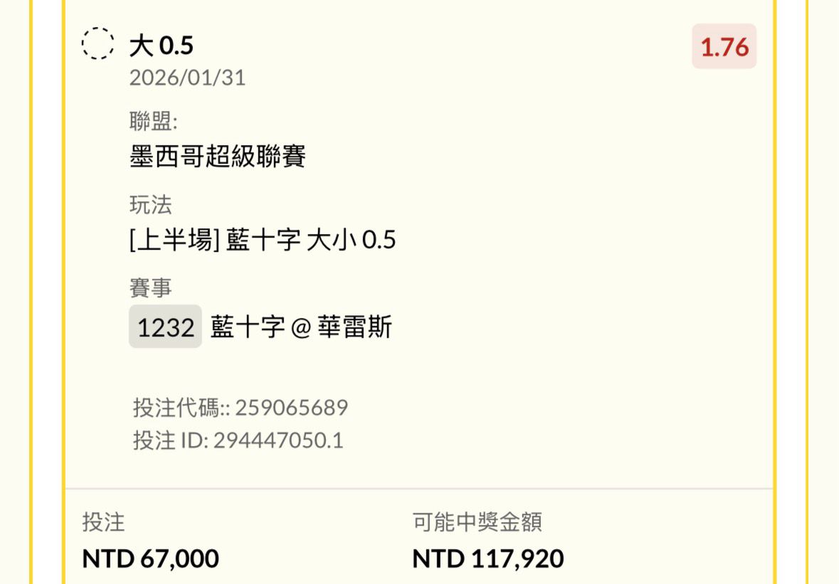※ 文章網址: https://webptt.com/m.aspx?n=bbs/SportLottery/M.1769820131.A.771.html