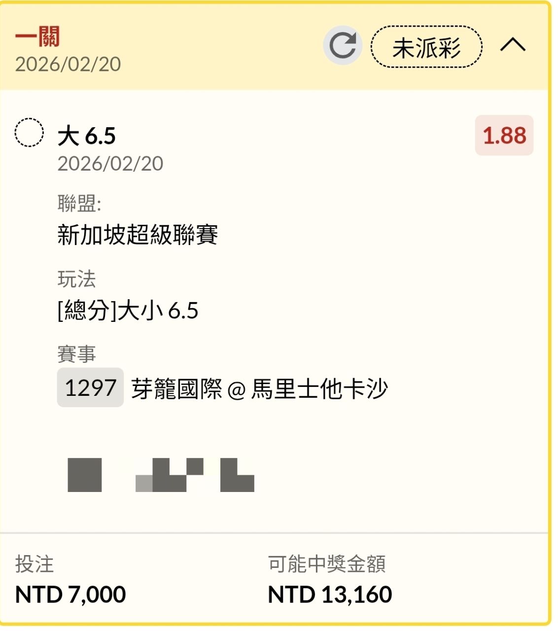 ※ 文章網址: https://webptt.com/m.aspx?n=bbs/SportLottery/M.1771588873.A.91C.html