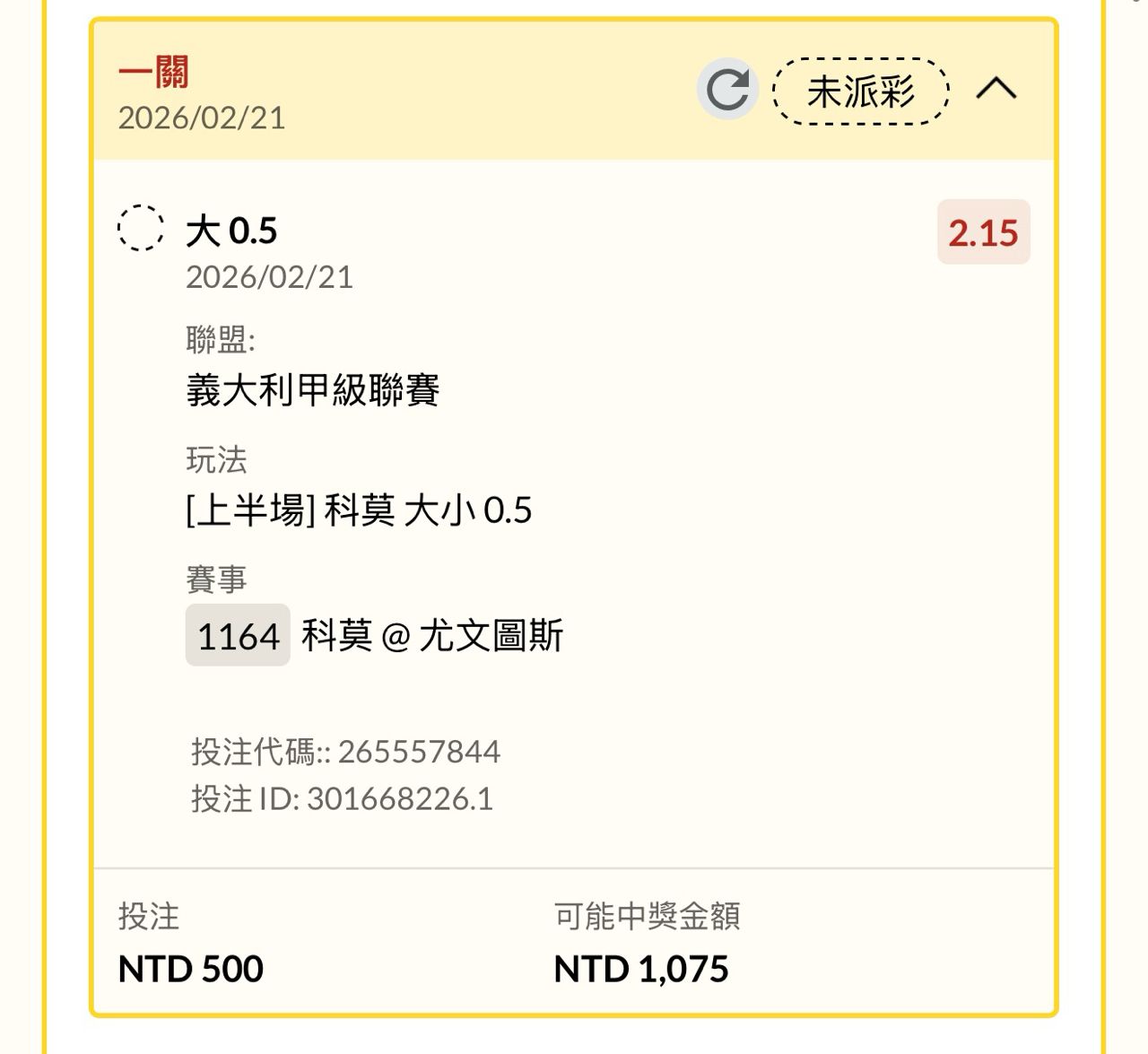 ※ 文章網址: https://webptt.com/m.aspx?n=bbs/SportLottery/M.1771680773.A.562.html
