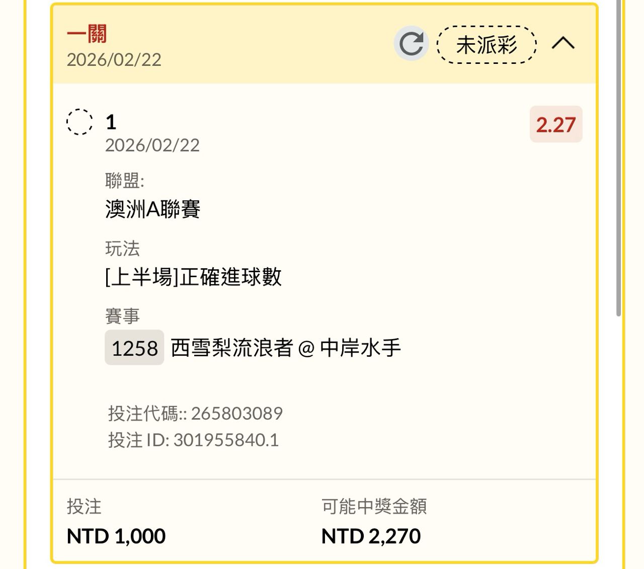 ※ 文章網址: https://webptt.com/m.aspx?n=bbs/SportLottery/M.1771739011.A.8E6.html