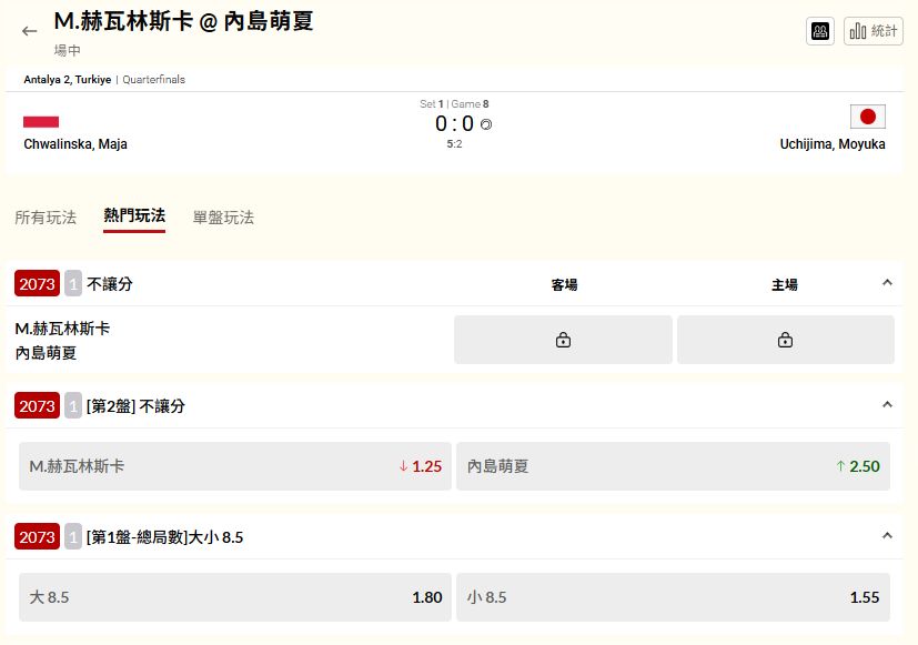 標題[實況] 網球 M.赫瓦林斯卡@內島萌夏(場中)