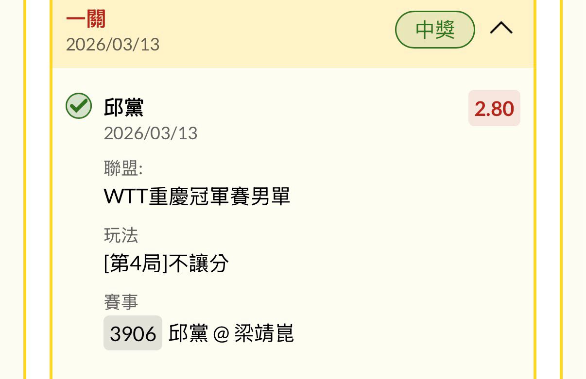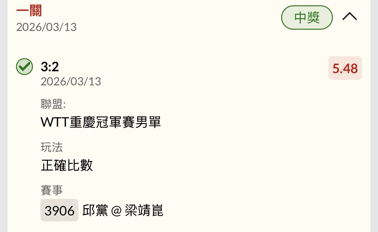※ 文章網址: https://webptt.com/m.aspx?n=bbs/SportLottery/M.1773382831.A.BF6.html
