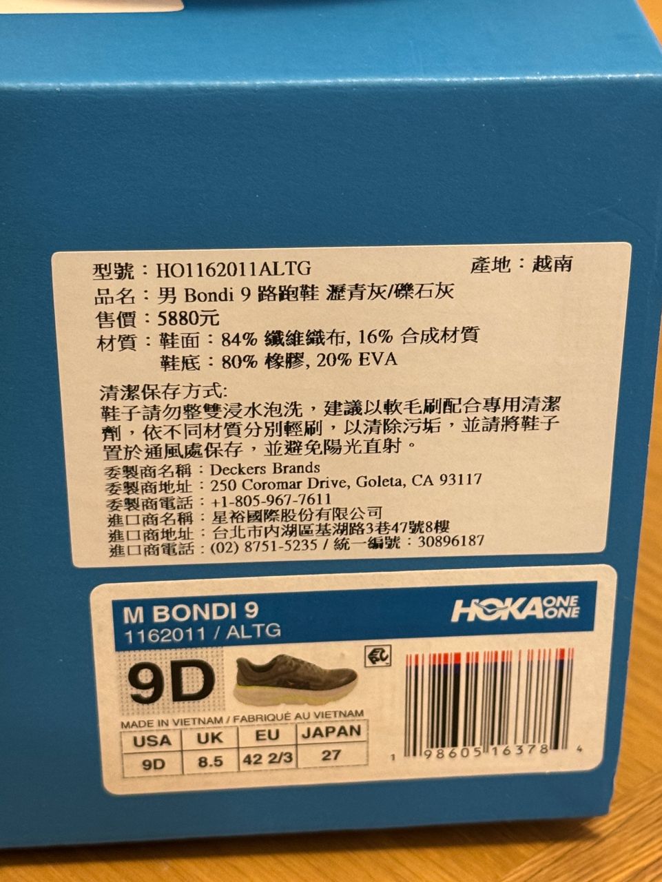 (1) 商品名稱:Hoka Bondi 9