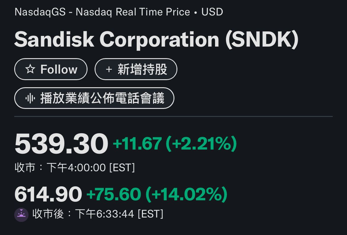1434F:推 maimss : 美國人真會玩,SNDK兩倍都開了 01/30 08:25