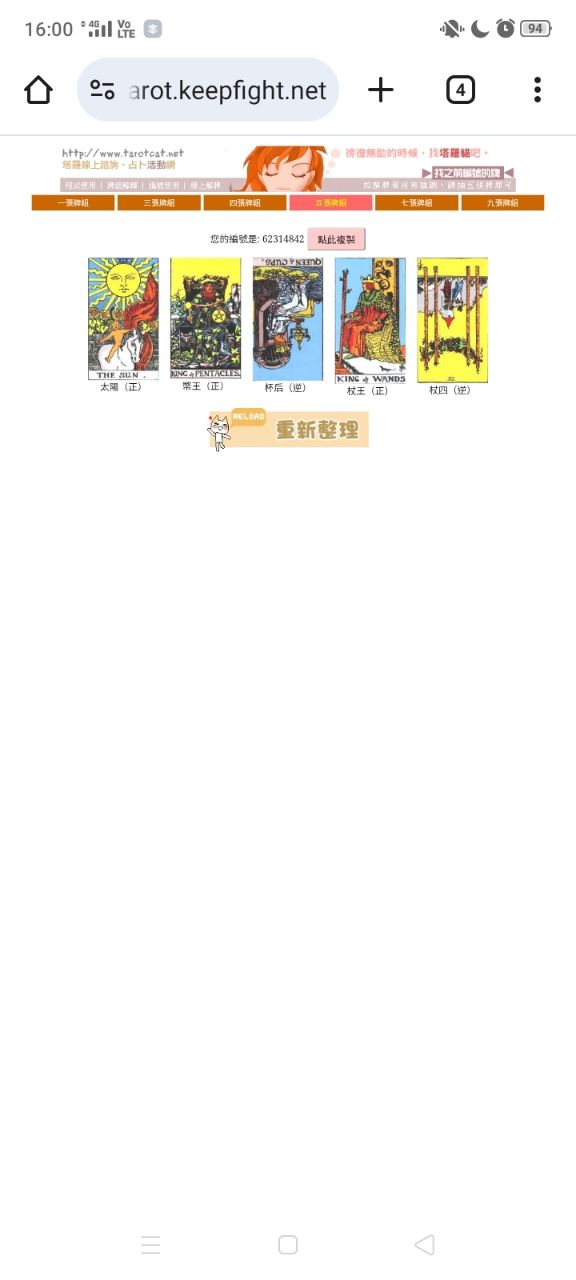 (五)請貼上出您所抽出塔羅牌的牌面文字,以供占卜師解讀使用。