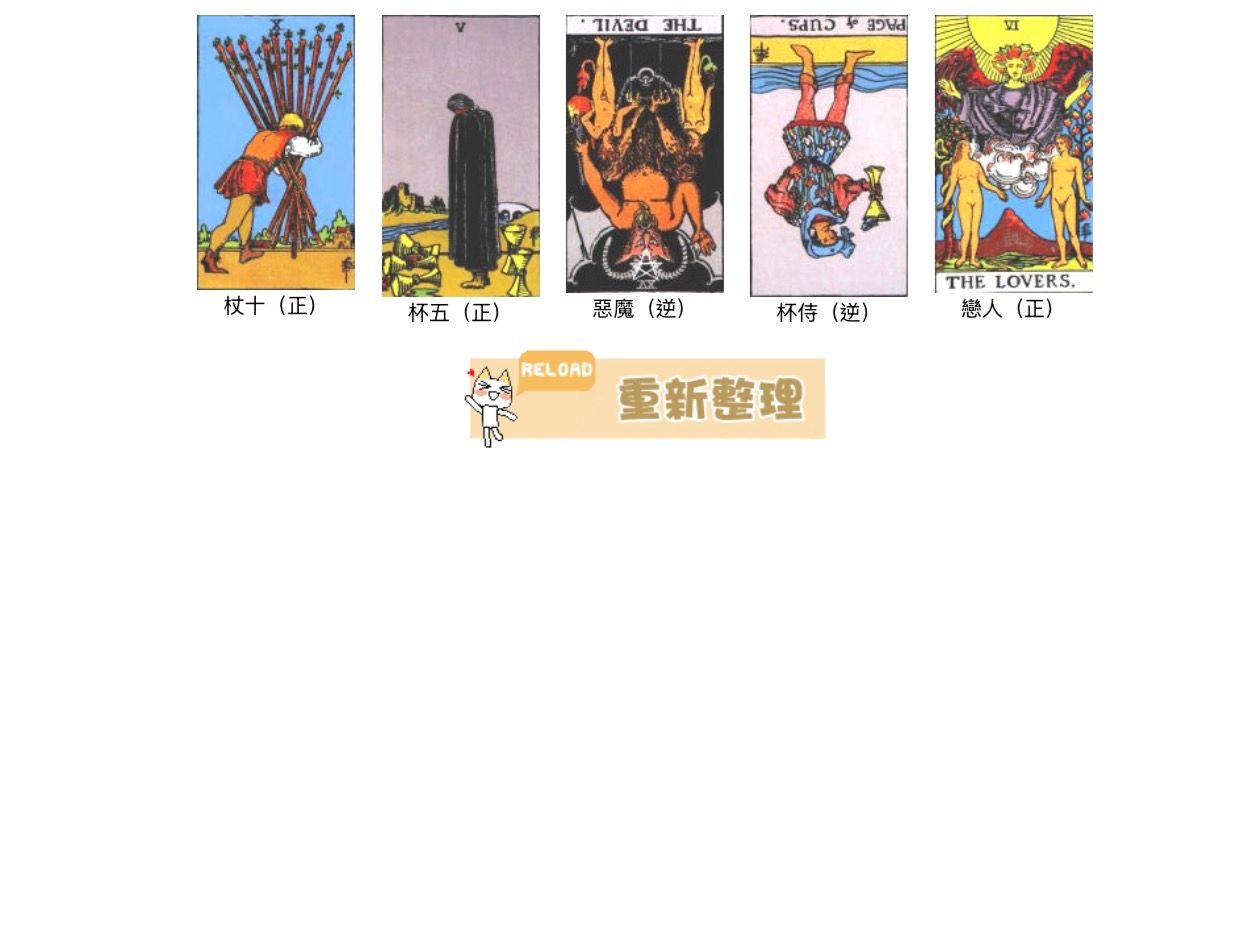 (五)請貼上出您所抽出塔羅牌的牌面文字,以供占卜師解讀使用。
