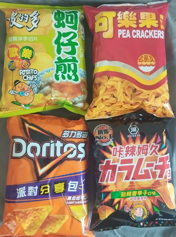 4.派對分享包,全部一包40元,有效期限2026/2-7月 可樂果20包 蚵仔煎20包 咔辣姆久20包 多利多茲6包
