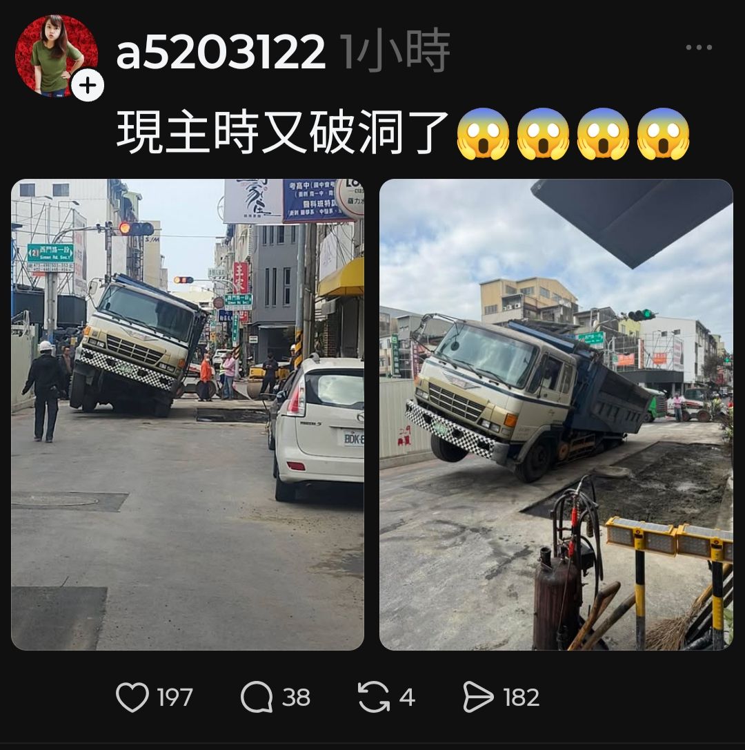 2024年3月發生「天坑」吞車事件,今日路面再度凹陷,塌陷區域長約7公尺、寬1.5公尺