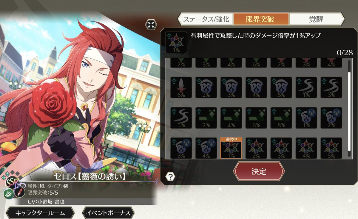 剋屬傷害 1/2/3/4/5% HP回復量 4/6% OL上升 6%