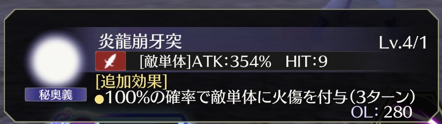 註:一般行動會得到50OL 打剋屬多10 爆擊多10 尾刀到敵人多15