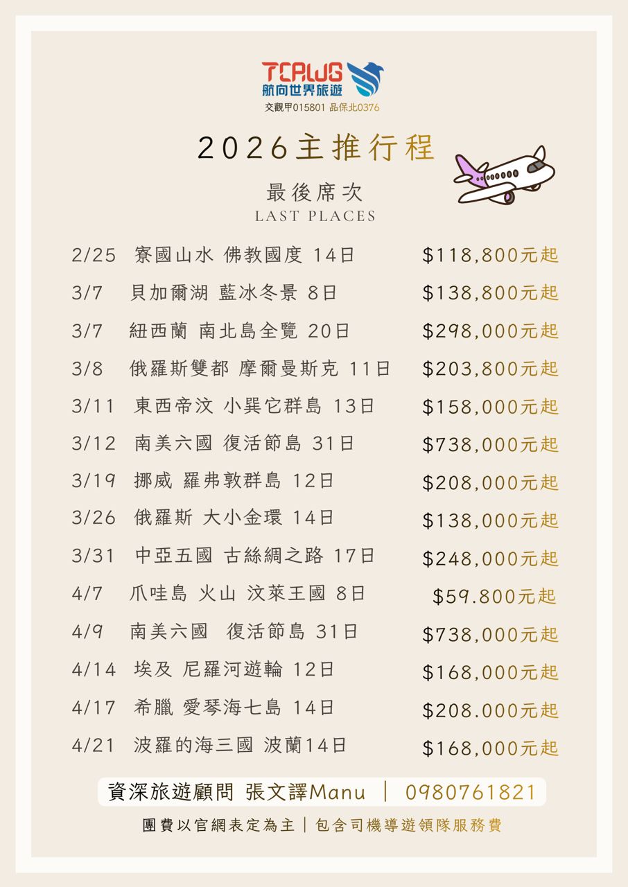 標題[情報] 2026 主推行程|最後席次提醒