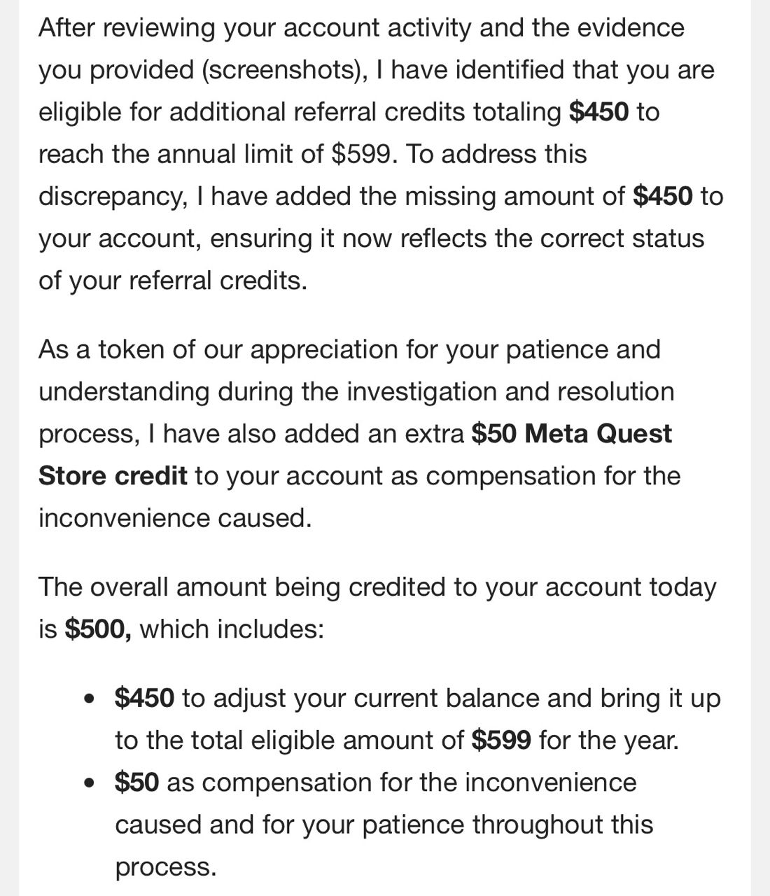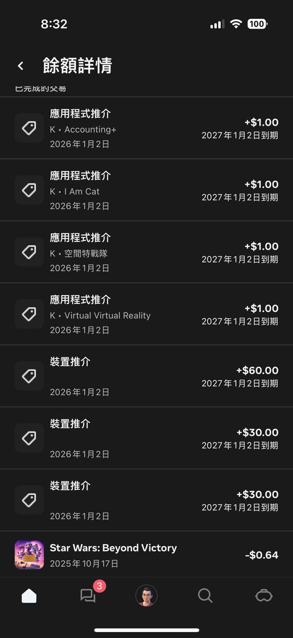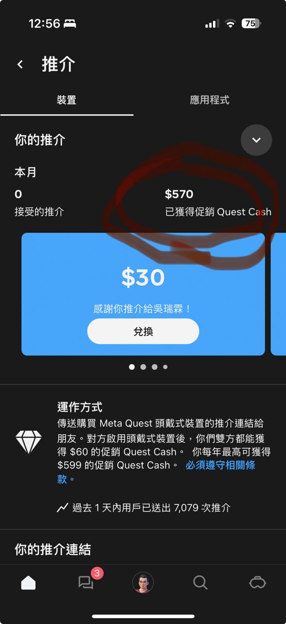 Meta 為了推廣 VR 裝置 Quest 一體機,自 2021 年起每年都有推薦購物金(最高領取 5